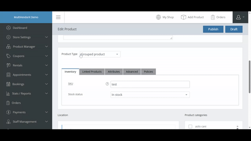 - Once you have enabled the Grouped options vendors can now add grouped products directly from their frontend dashboard.